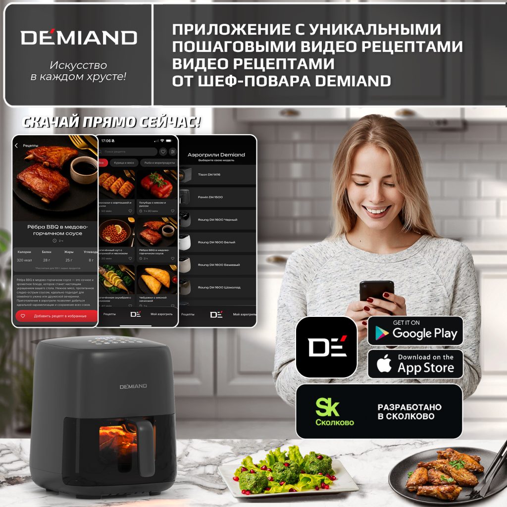 Представляем вам усовершенствованную и инновационную модель аэрогриля с Wi-Fi DEMIAND TARVIN — это ваш идеальный помощник в приготовлении вкусных завтраков, обедов и ужинов.