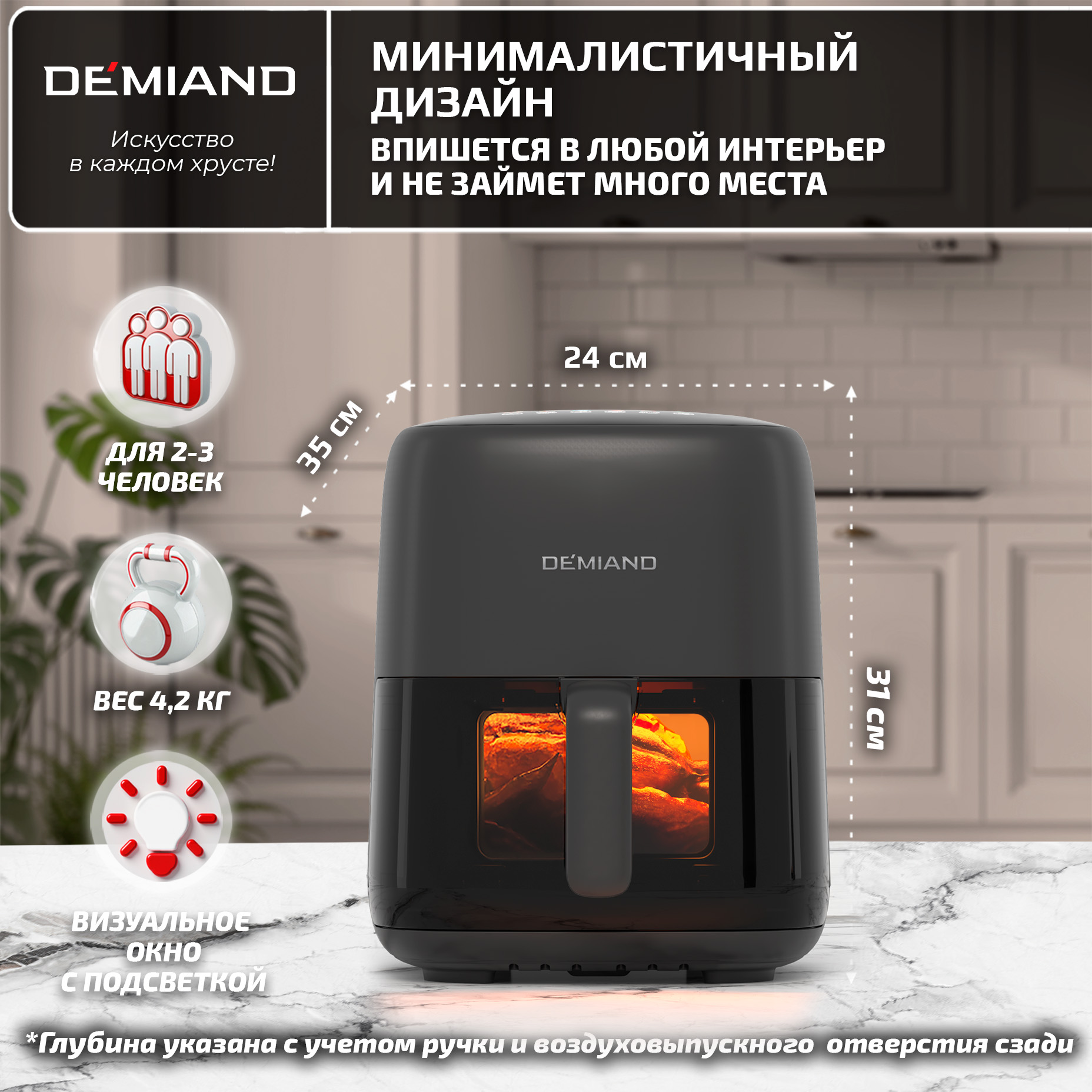 Аэрогриль DEMIAND TARVIN с Wi-Fi, управлением через приложение, с функциями фритюрницы, гриля, духовки, тостера, мини-печи, сенсорная панель управления, съемная решетка, визуальное окно, керамическое покрытие, 12 автоматических программ, разогрев, подсветка, книга рецептов, объем 4,5 литра, 1500Вт, DK-5200/Черный