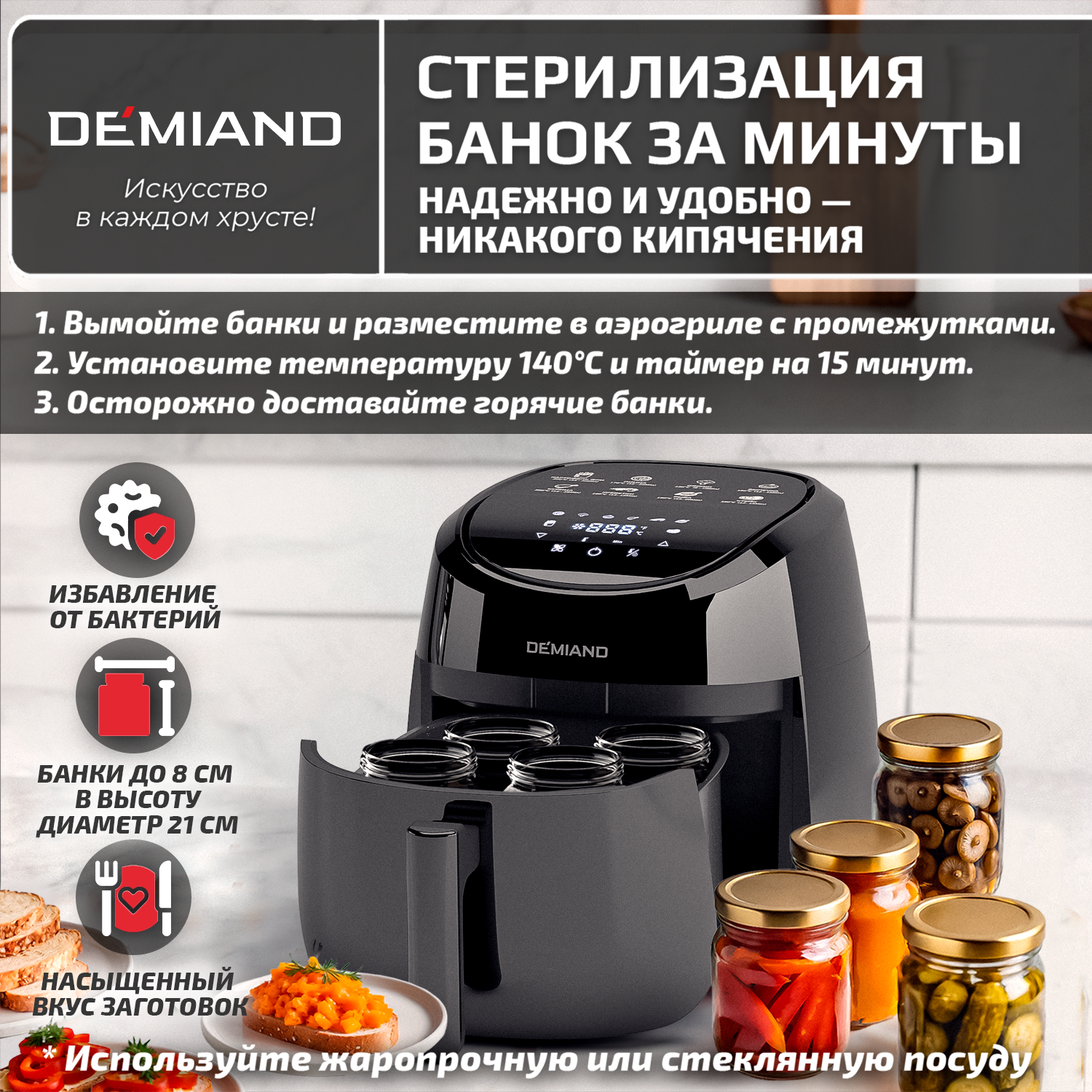 Аэрогриль DEMIAND RAUNG 5 в 1, 8 автоматических программ, съемная решетка, корзина со съемной ручкой, книга рецептов, объем 4,5 литра, 1400Вт, DK-1600/Черный