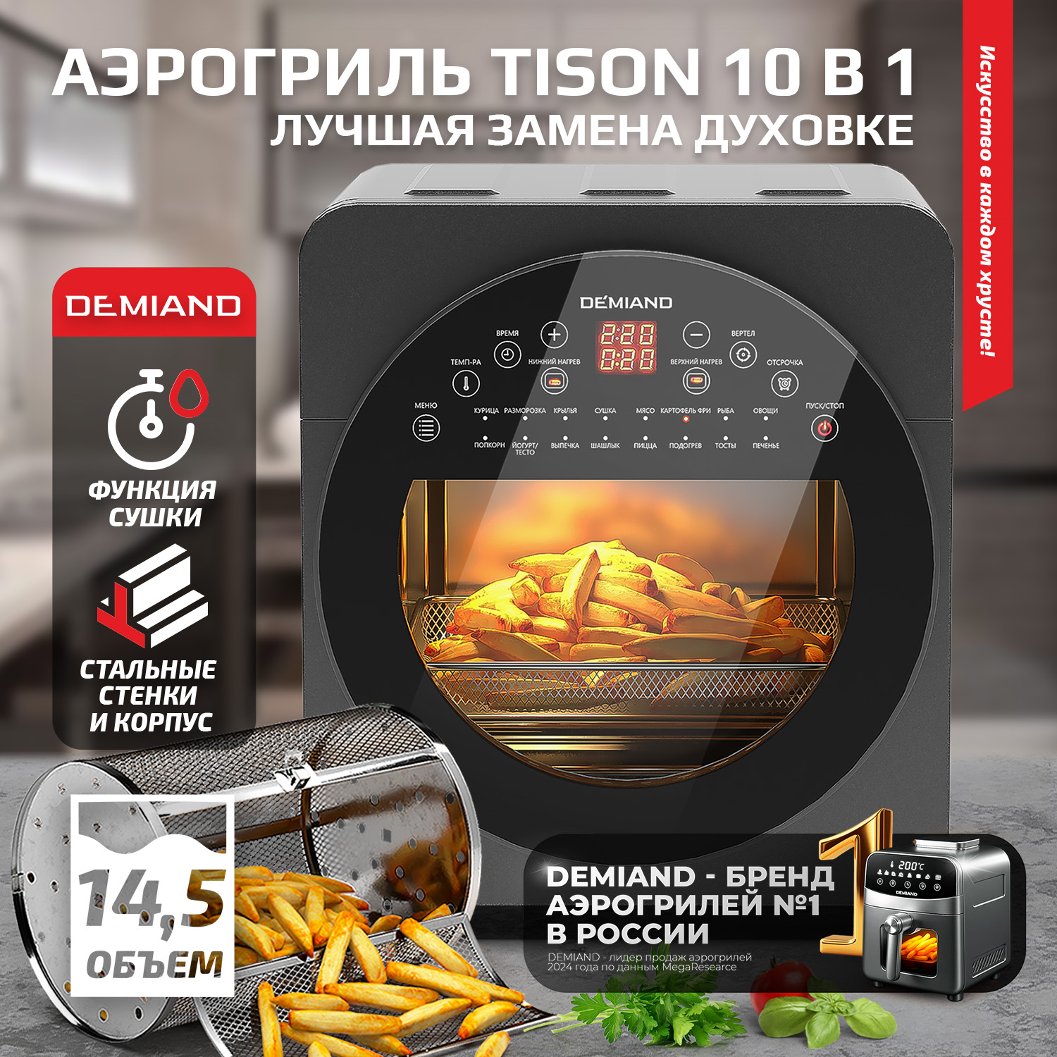 Аэрогриль DEMIAND Tison 10 в 1, сенсорная панель, 16 программ, 6 аксессуаров, книга рецептов, объем 14,5 литров, 1700Вт, DK-1416