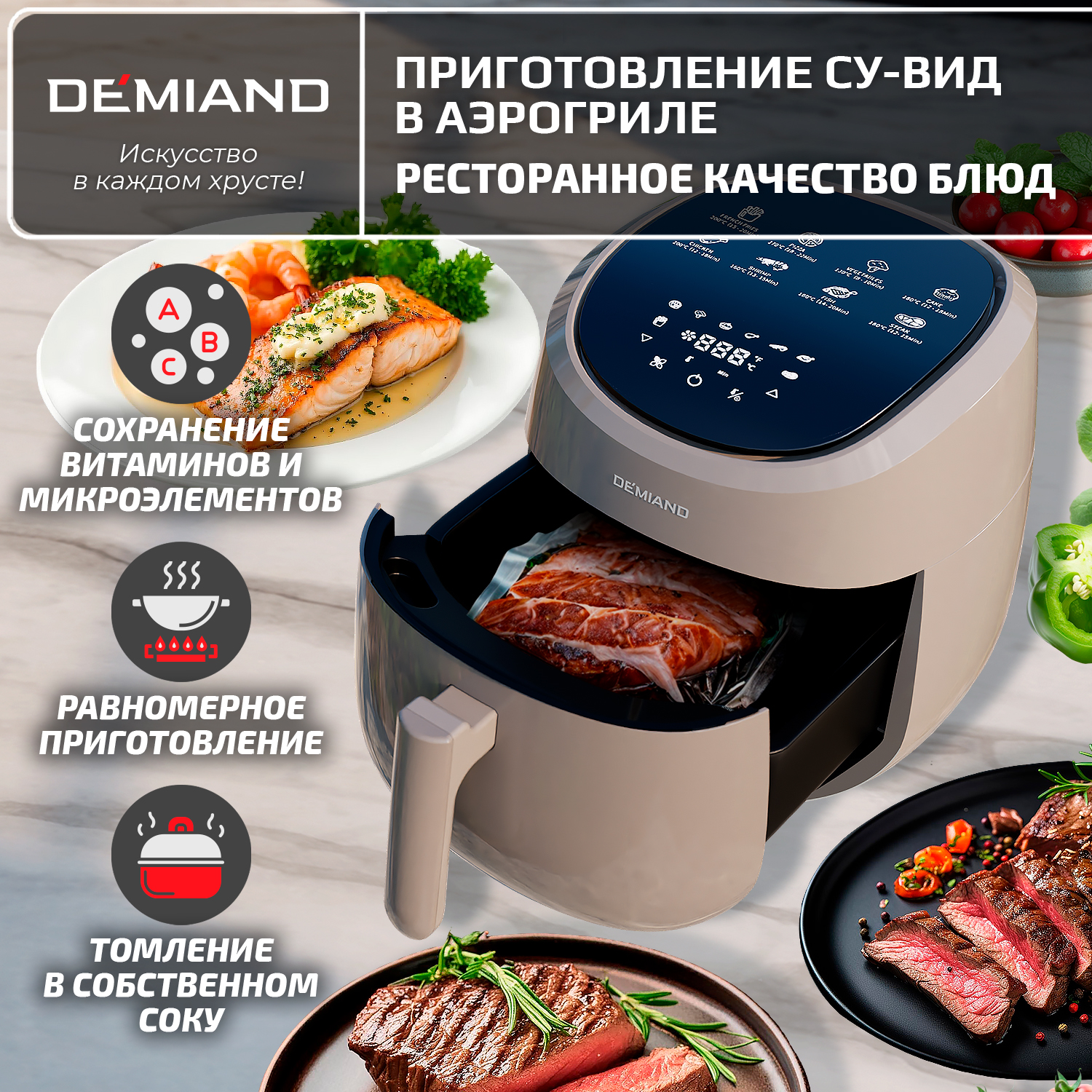 Аэрогриль DEMIAND RAUNG 5 в 1, 8 автоматических программ, съемная решетка, корзина со съемной ручкой, книга рецептов, объем 4,5 литра, 1400Вт, DK-1600/Бежевый