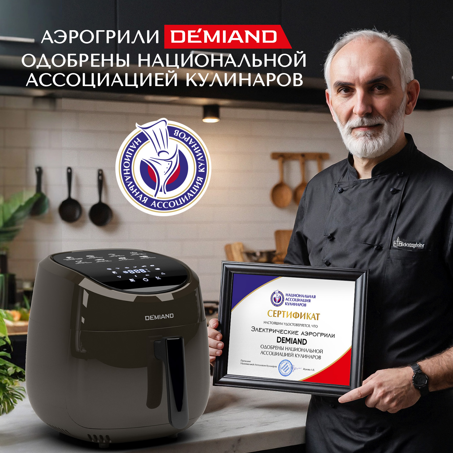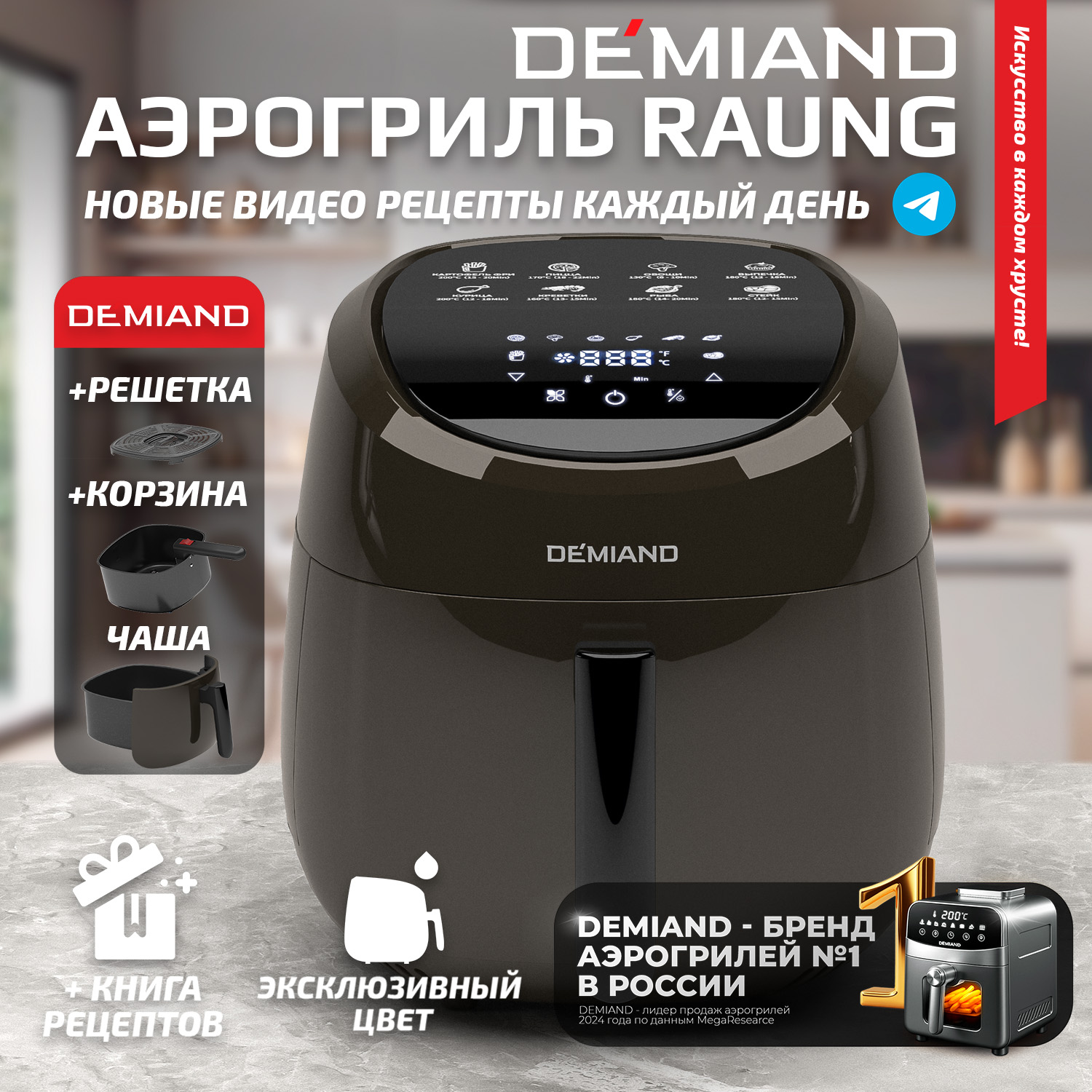 Аэрогриль DEMIAND RAUNG 5 в 1, 8 автоматических программ, съемная решетка, корзина со съемной ручкой, книга рецептов, объем 4,5 литра, 1400Вт, DK-1600/Шоколад